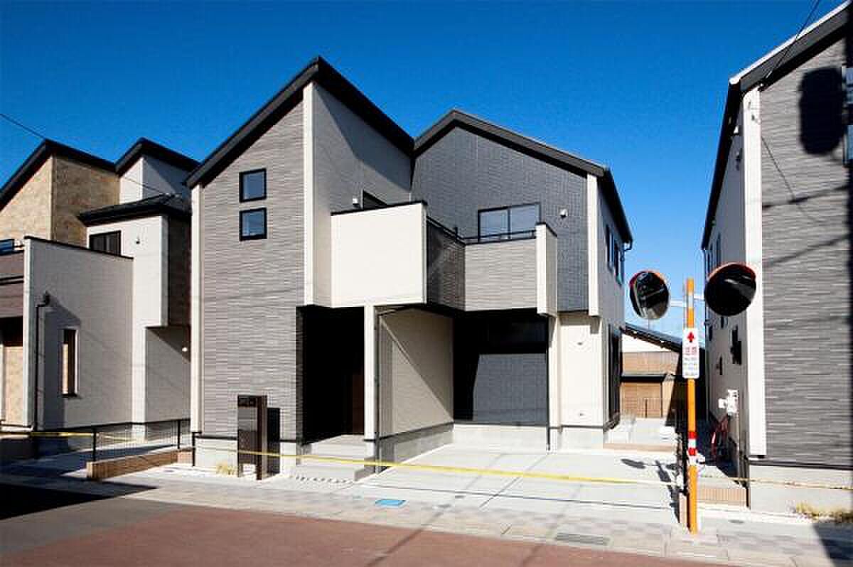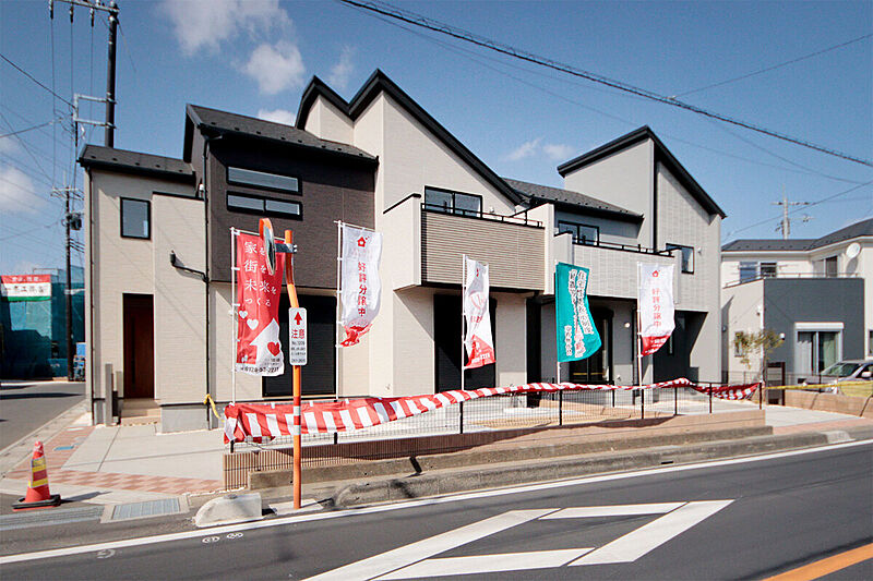 ■統一感ある街並みが広がる全55棟の大型分譲地。全棟長期優良住宅認定、耐震等級3・制震ダンパー採用で安心の住まい。