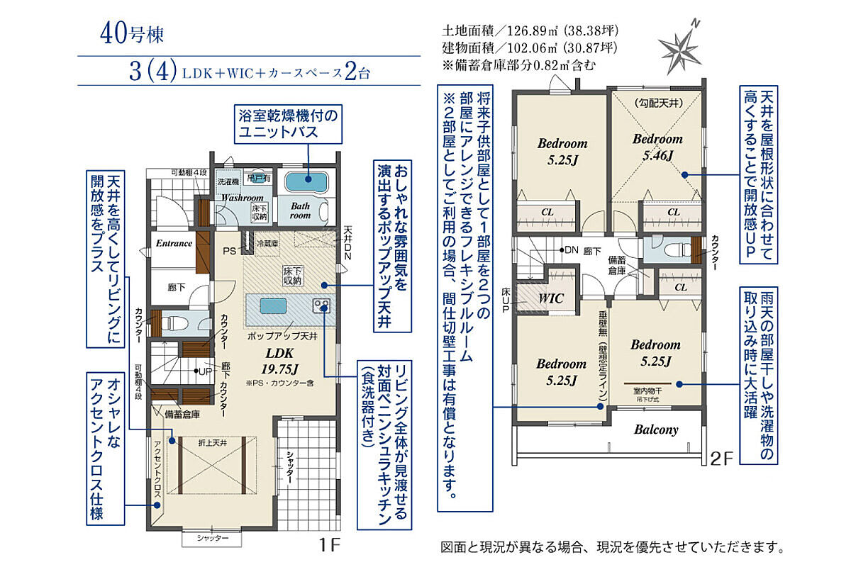 40号棟 間取り 3LDK→4LDKに間取り変更 価格 3880万円 建物面積 102.06m2 土地面積 126.89m2 -