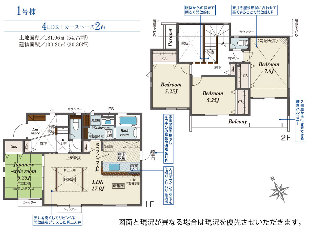 | 建物面積 | 100.20m2(約30.31坪) | 土地面積 | 181.06m2(約54.77坪) |