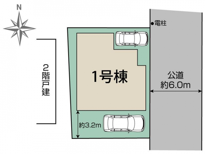 | 駐車場 | 2台 | 道路の幅員 | 東6.0m公道 |