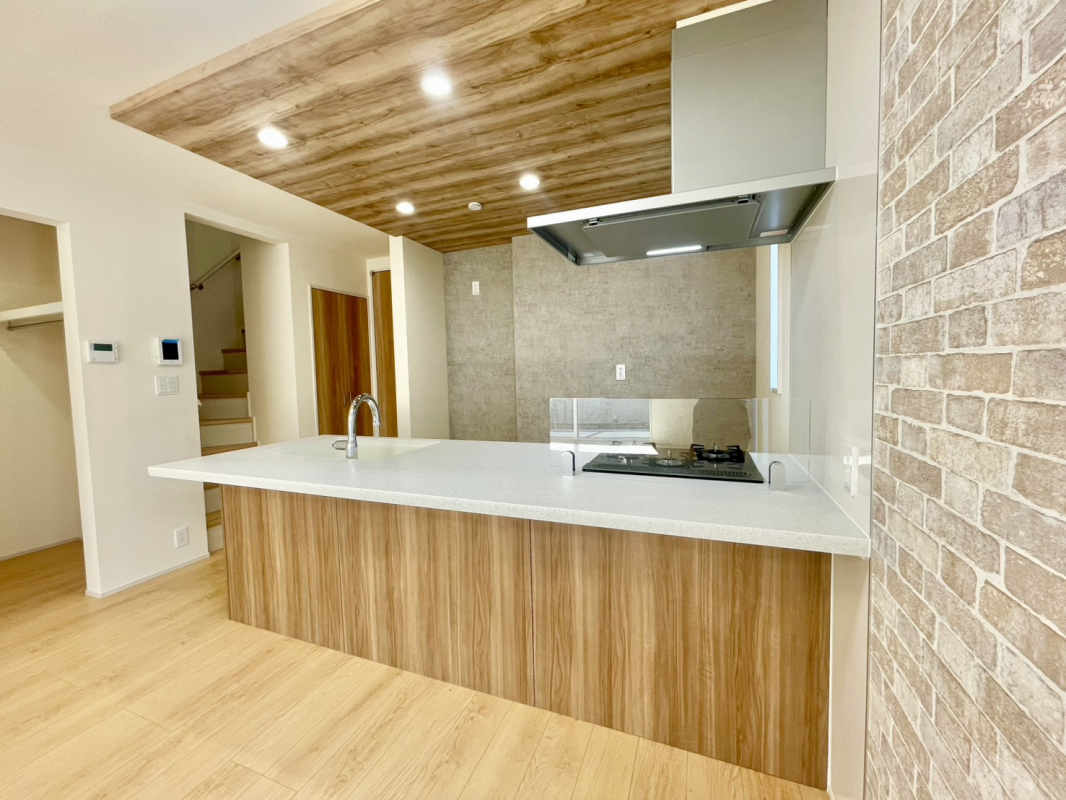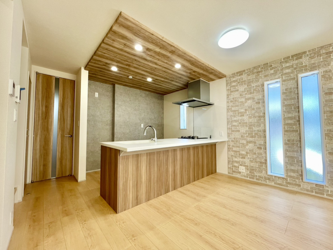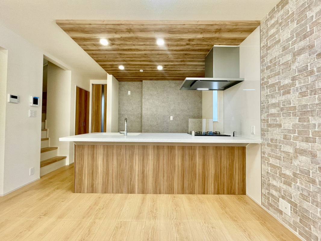 ☆キッチン上部は木目調天井を採用し、落ち着いたデザインに。♪ダ...