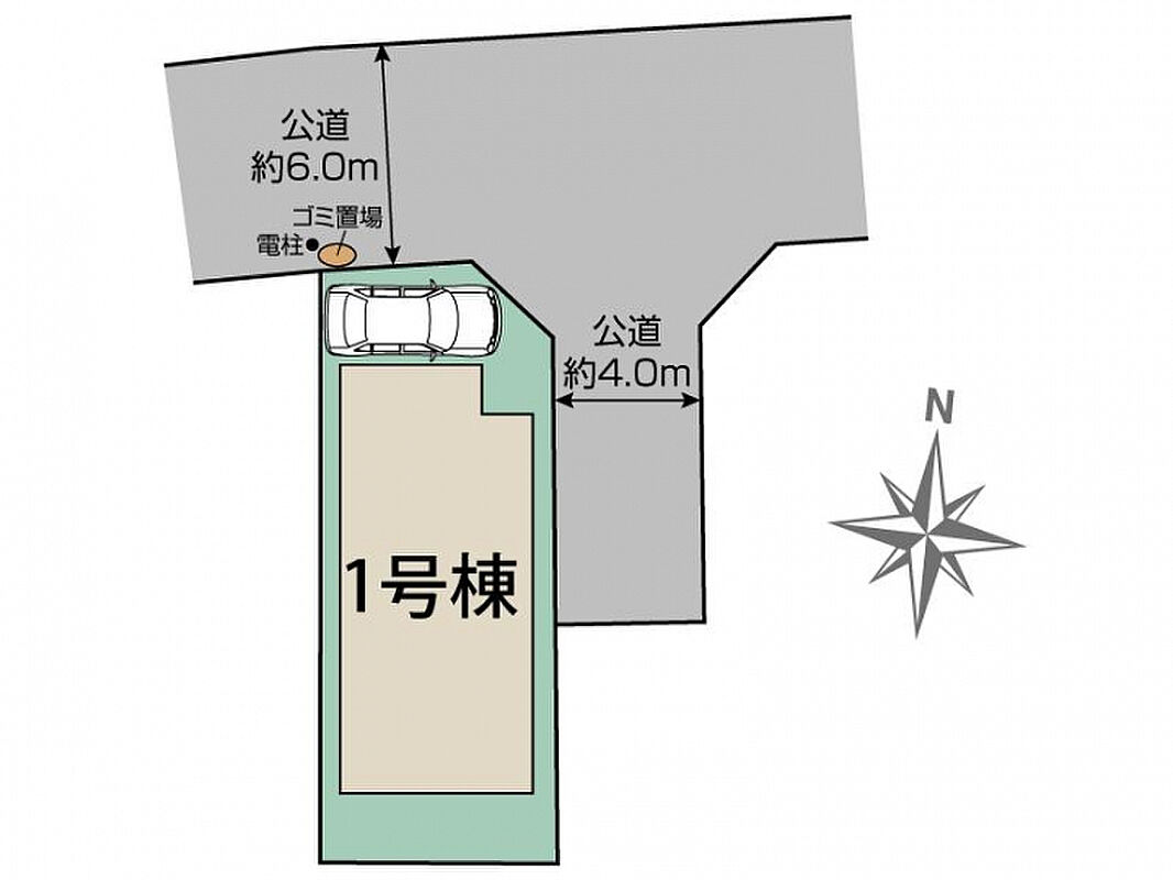 | 駐車場 | 1台 | 道路の幅員 | 北6.0m公道、東4.0m公道 |