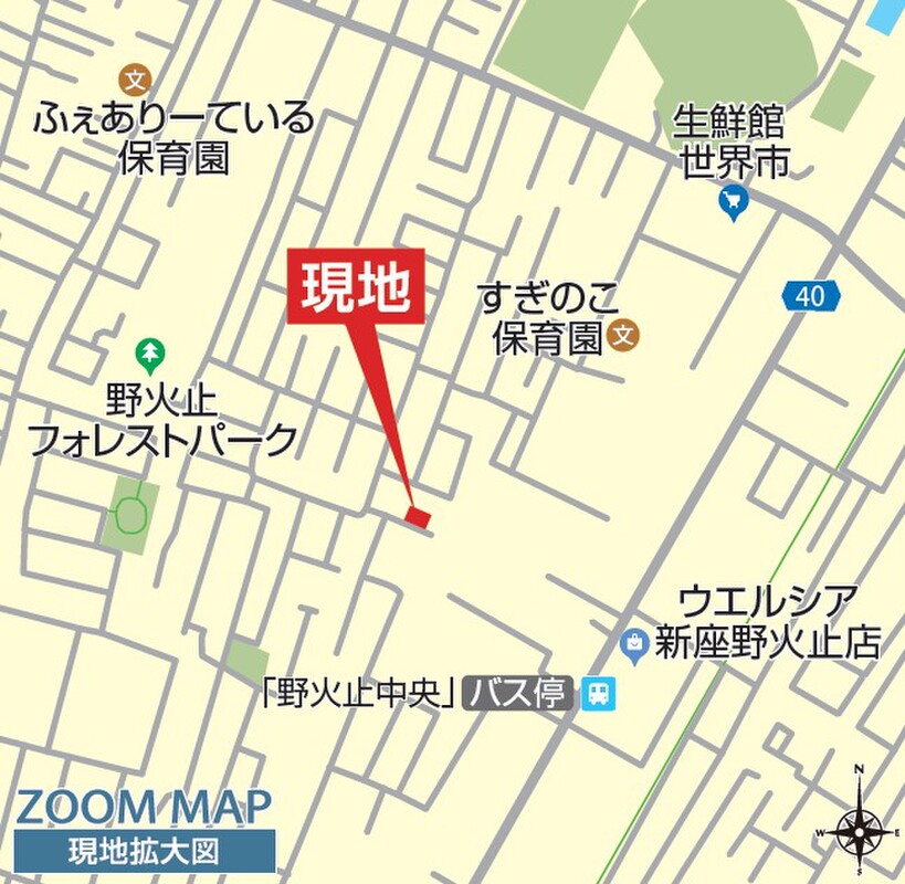JR武蔵野線「新座」駅 徒歩13分~13分 東武東上線「志木」駅 バス10分「野火止中央」バス停 徒歩6分~6分 |