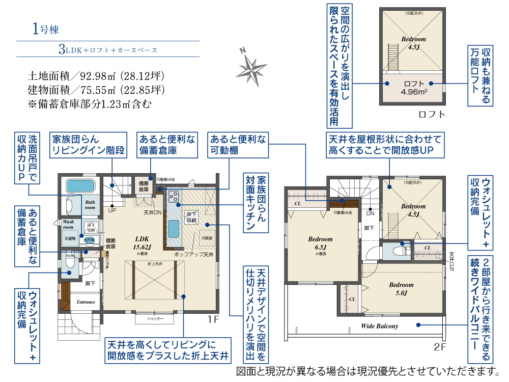 | 建物面積 | 75.55m2(約22.85坪) | 土地面積 | 92.98m2(約28.12坪) |