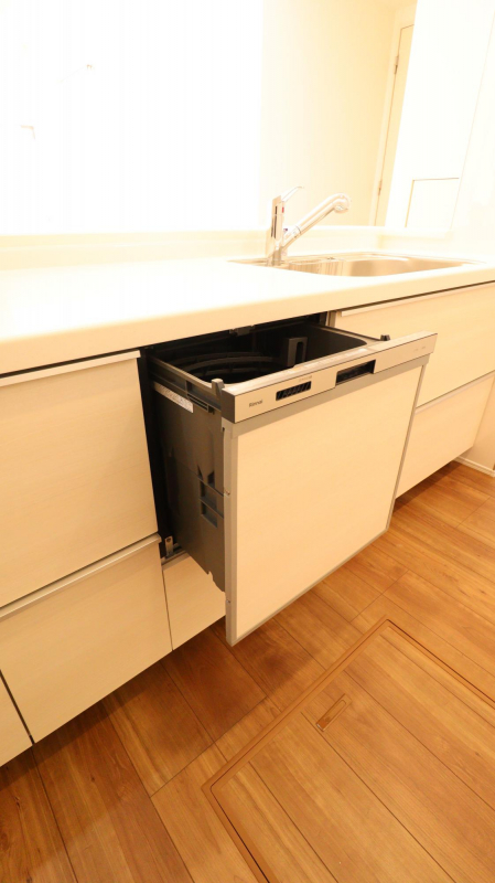 キッチンには、ボタン操作ひとつで油汚れをスッキリ!ビルトインタイプのスマート設計の食器洗浄乾燥機をご用意致しました。