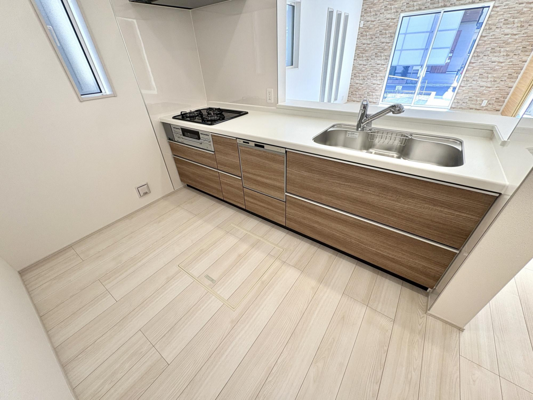 キッチンには、ボタン操作ひとつで油汚れをスッキリ!ビルトインタイプのスマート設計の食器洗浄乾燥機をご用意致しました。