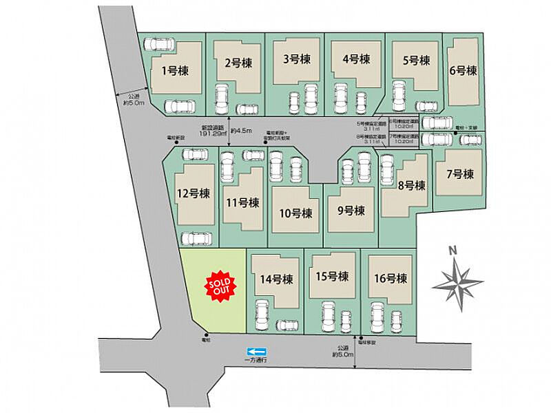 | 駐車場 | 2台 | 道路の幅員 | 西約5.0m公道、南約5.0m公道、新設道路約4.5m私道 |