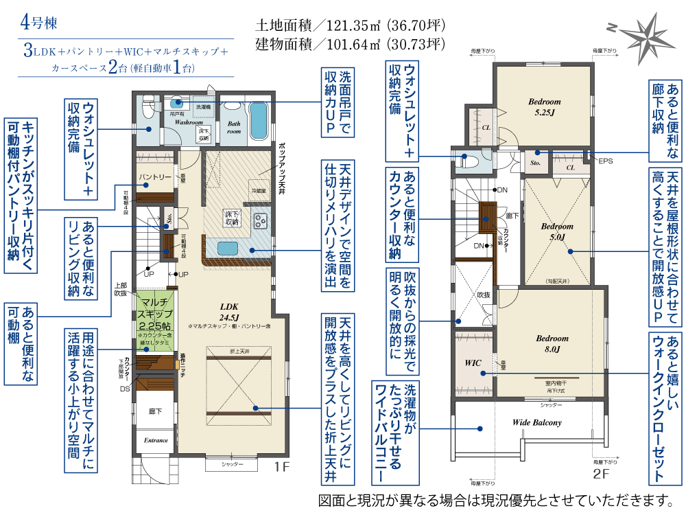 | 建物面積 | 100.61m2(約30.43坪)~101.64m2(約30.74坪) | 土地面積 | 121.35m2(約36.70坪) |