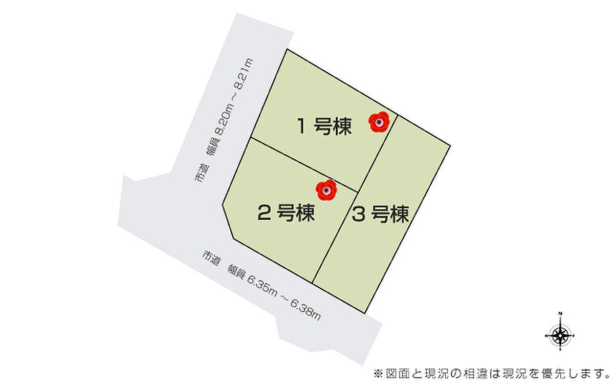 | 駐車場 | 3台 | 道路の幅員 | 道路幅 6.35 m ~ 8.21 m アスファルト舗装 |