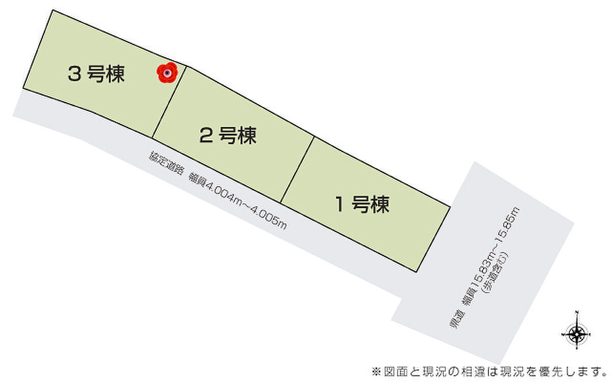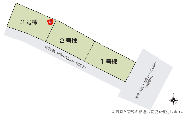 | 駐車場 | 3台 | 道路の幅員 | 道路幅 4.00 m ~ 15.85 m アスファルト舗装 |