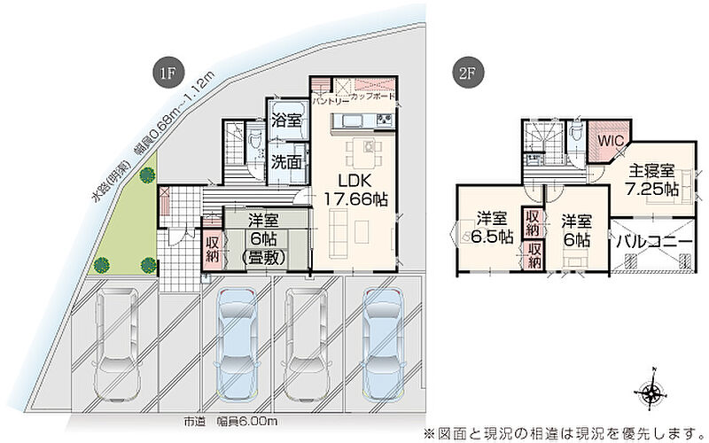 | 駐車場 | 4台 | 道路の幅員 | 道路幅 6.00 m ~ 14.40 m アスファルト舗装 |