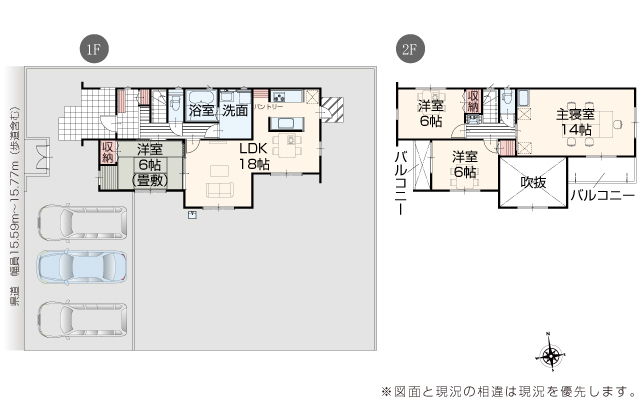 | 駐車場 | 3台 | 道路の幅員 | 道路幅 15.59 m ~ 15.77 m アスファルト舗装 |