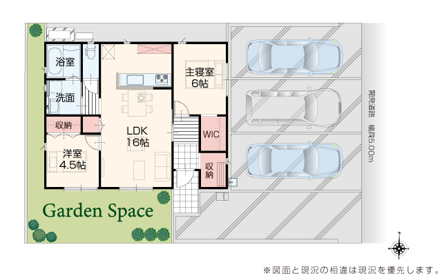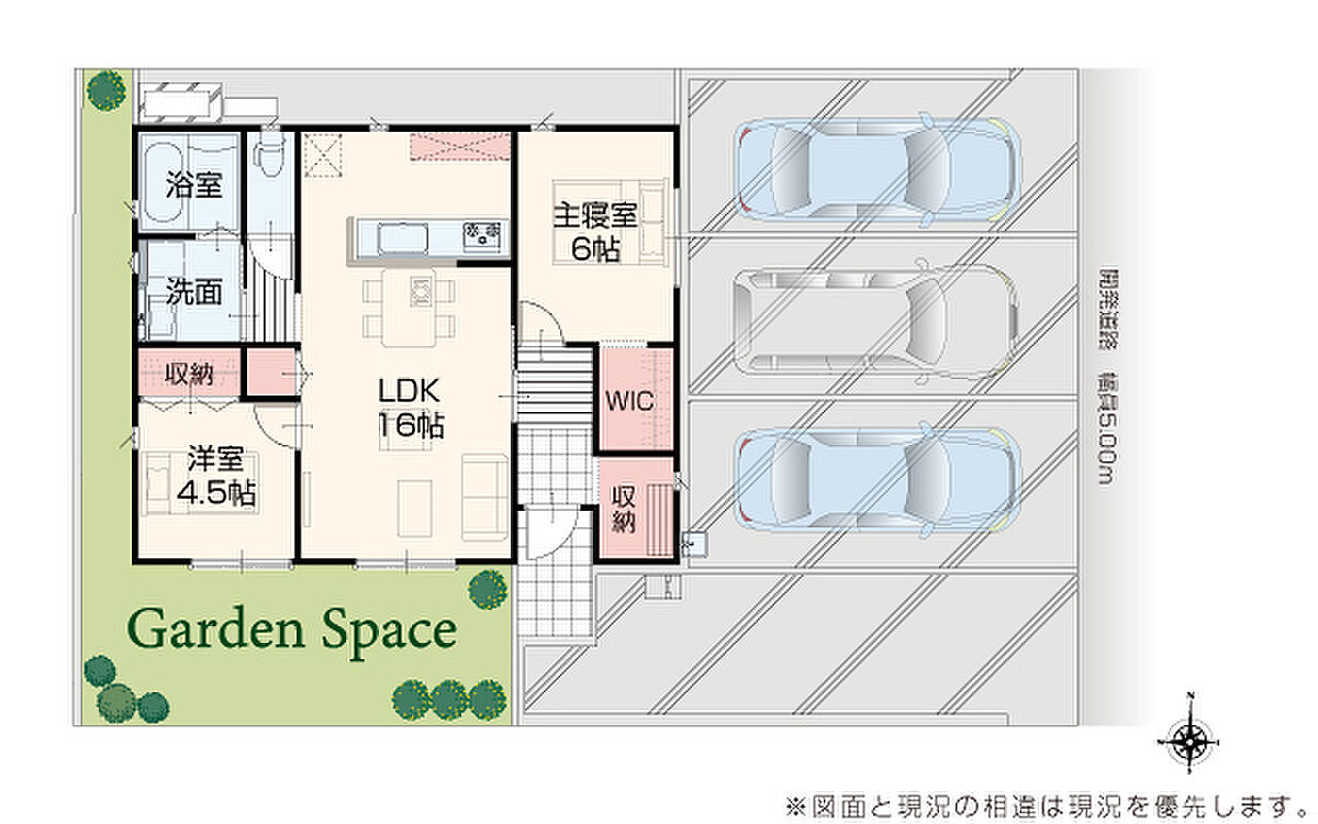 | 駐車場 | 3台 | 道路の幅員 | 道路幅 5.00 m アスファルト舗装 |