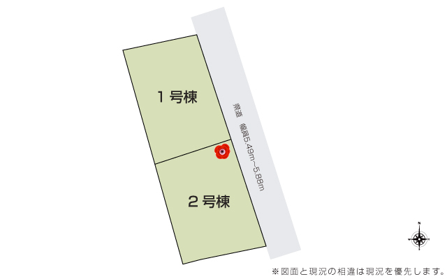 | 駐車場 | 3台 | 道路の幅員 | 道路幅 5.49 m ~ 5.88 m アスファルト舗装 |