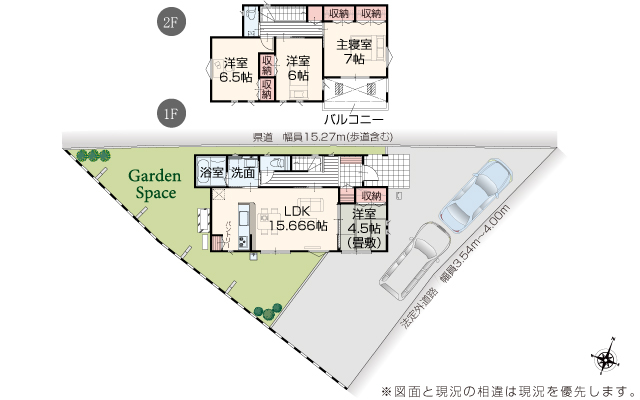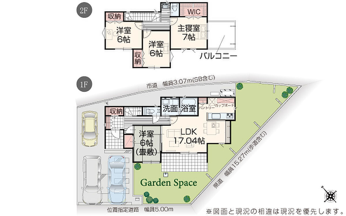| 駐車場 | 3台 | 道路の幅員 | 道路幅 3.07 m ~ 15.27 m アスファルト舗装 |