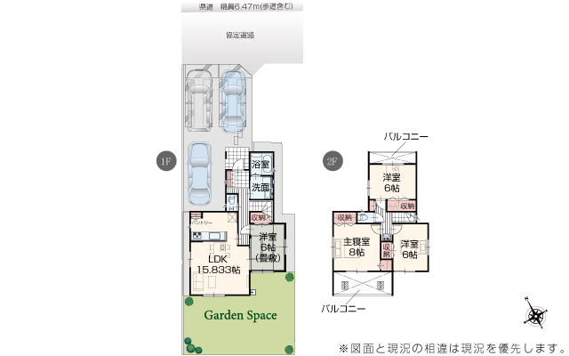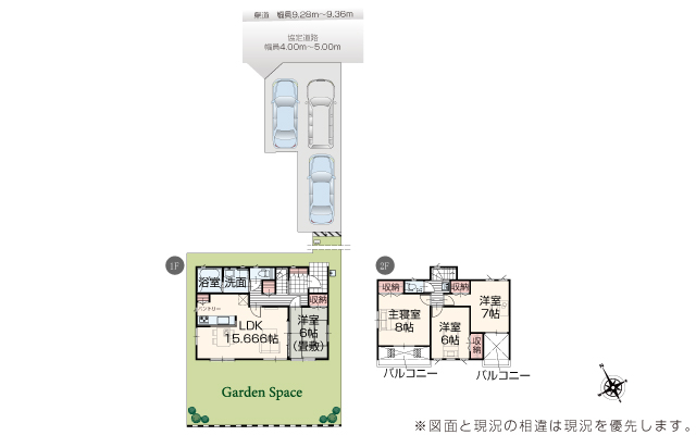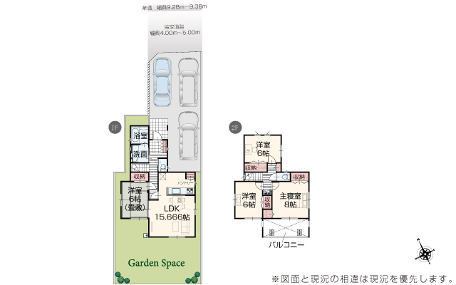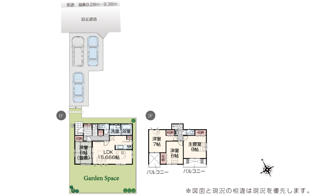 | 駐車場 | 3台 | 道路の幅員 | 道路幅 4.00 m ~ 9.36 m アスファルト舗装 |