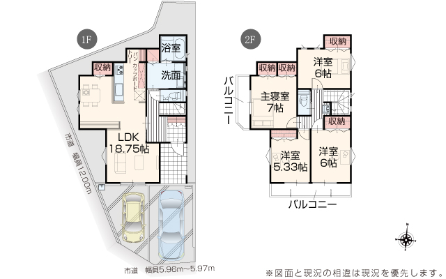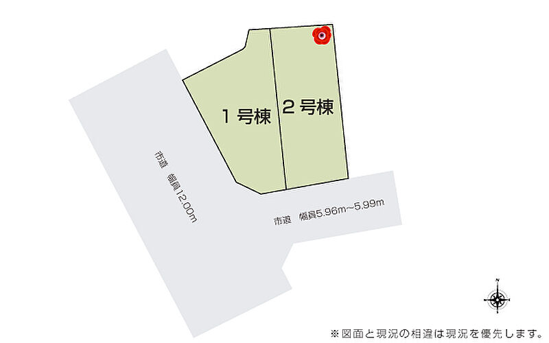 | 駐車場 | 2台 | 道路の幅員 | 道路幅 5.96 m ~ 12.00 m アスファルト舗装 |