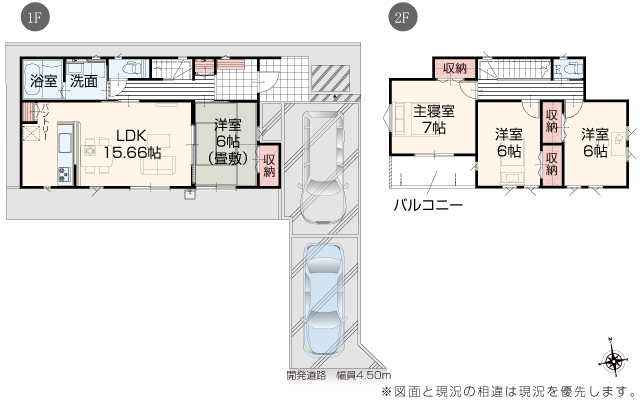 | 駐車場 | 2台 | 道路の幅員 | 道路幅 4.00 m ~ 7.68 m アスファルト舗装 |