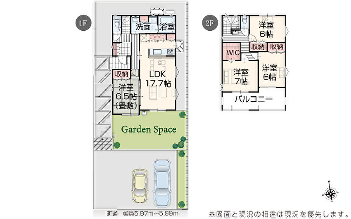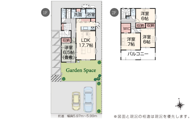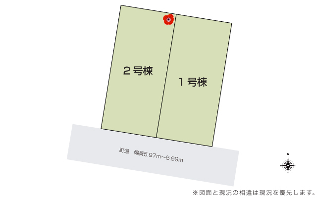 | 駐車場 | 2台 | 道路の幅員 | 道路幅 5.97 m ~ 5.99 m アスファルト舗装 |