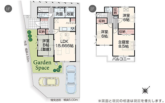 | 駐車場 | 2台 | 道路の幅員 | 道路幅 4.59 m ~ 5.00 m アスファルト舗装 |