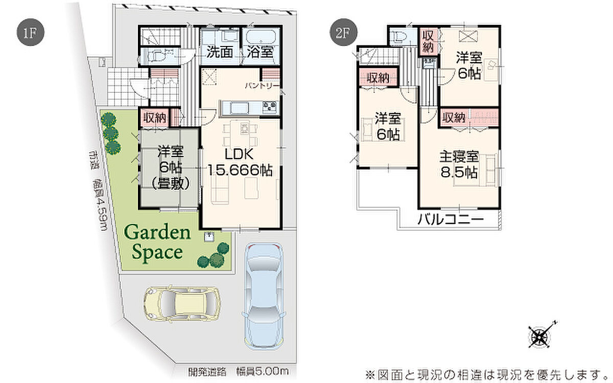 | 駐車場 | 2台 | 道路の幅員 | 道路幅 4.59 m ~ 5.00 m アスファルト舗装 |