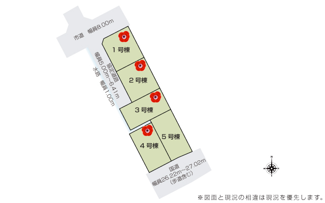 | 駐車場 | 3台 | 道路の幅員 | 道路幅 5.00 m ~ 27.02 m アスファルト舗装 |