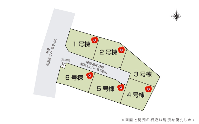 | 備考 | 公営水道、東京電力、都市ガス、本下水 【許可】位置指定道路 第13号※位置指定道路ゴミ置場各持分有り※2・3・4・5号棟協定道路持分有り。協定面積:2号棟0.5m<sup>2</sup>、3号棟10m<sup>2</sup>、4号棟10m<sup>2</sup>、5号棟2.6m<sup>2</sup>。※掲載画像は色、仕様、デザイン等変更される場合があります。※図面と現場との相違は現場を優先します。※完成時期・入居時期は天候等によって遅れる場合があります。また、完成時期は完了検査日(予定含む)としています。※周辺環境はページ公開日時点の情報となります。※建設エリア、時期によっては使用メーカー及び設備・仕様について一部変更される場合があります。詳しくはお問い合わせにてご確認下さい。物件管理番号:23-P2 | ||