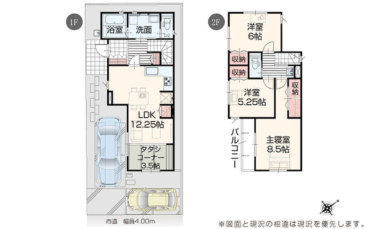 | 駐車場 | 2台 | 道路の幅員 | 道路幅 4.00 m ~ 4.01 m アスファルト舗装 |