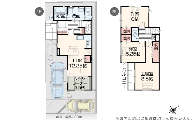 | 駐車場 | 2台 | 道路の幅員 | 道路幅 4.00 m ~ 4.01 m アスファルト舗装 |