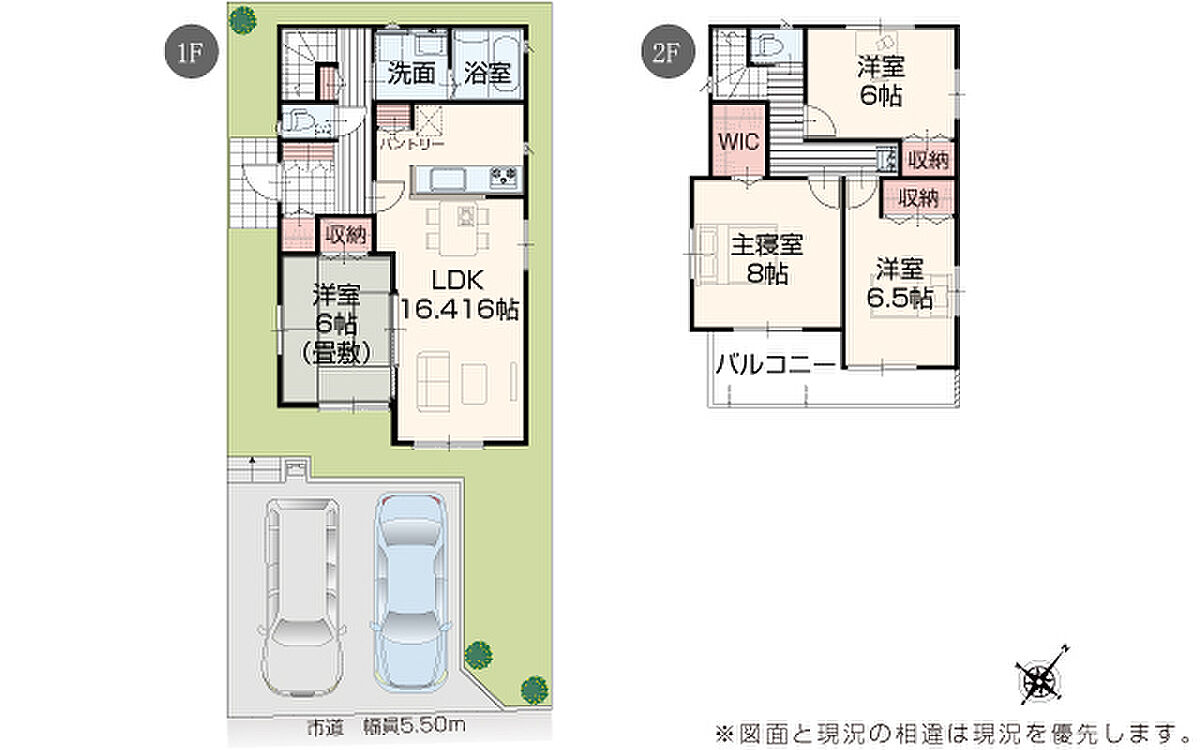 | 駐車場 | 2台 | 道路の幅員 | 道路幅 4.00 m ~ 5.50 m アスファルト舗装 |