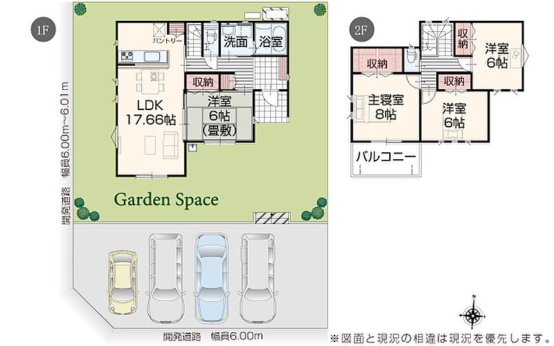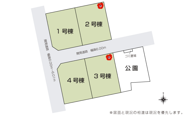 | 駐車場 | 4台 | 道路の幅員 | 道路幅 6.00 m ~ 6.01 m アスファルト舗装 |