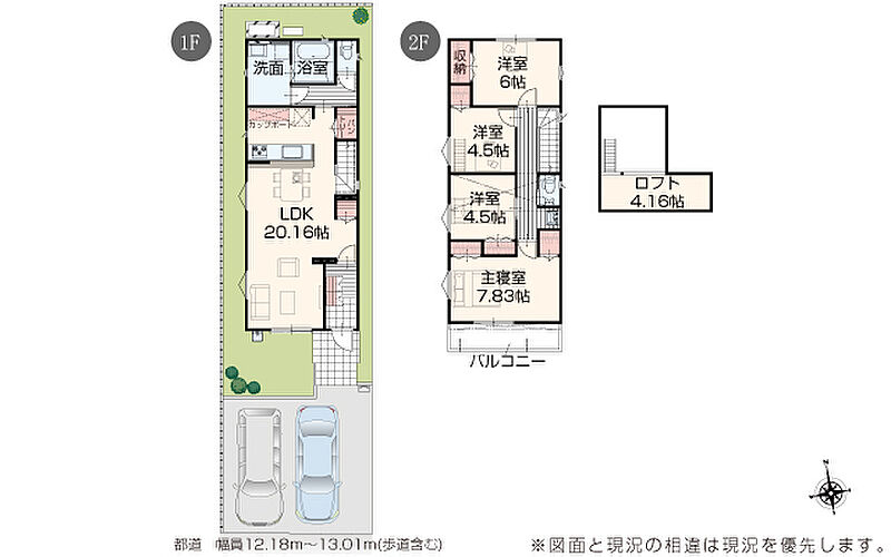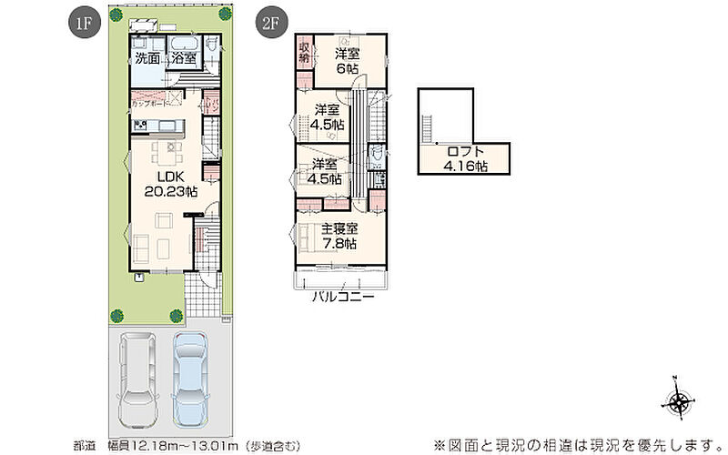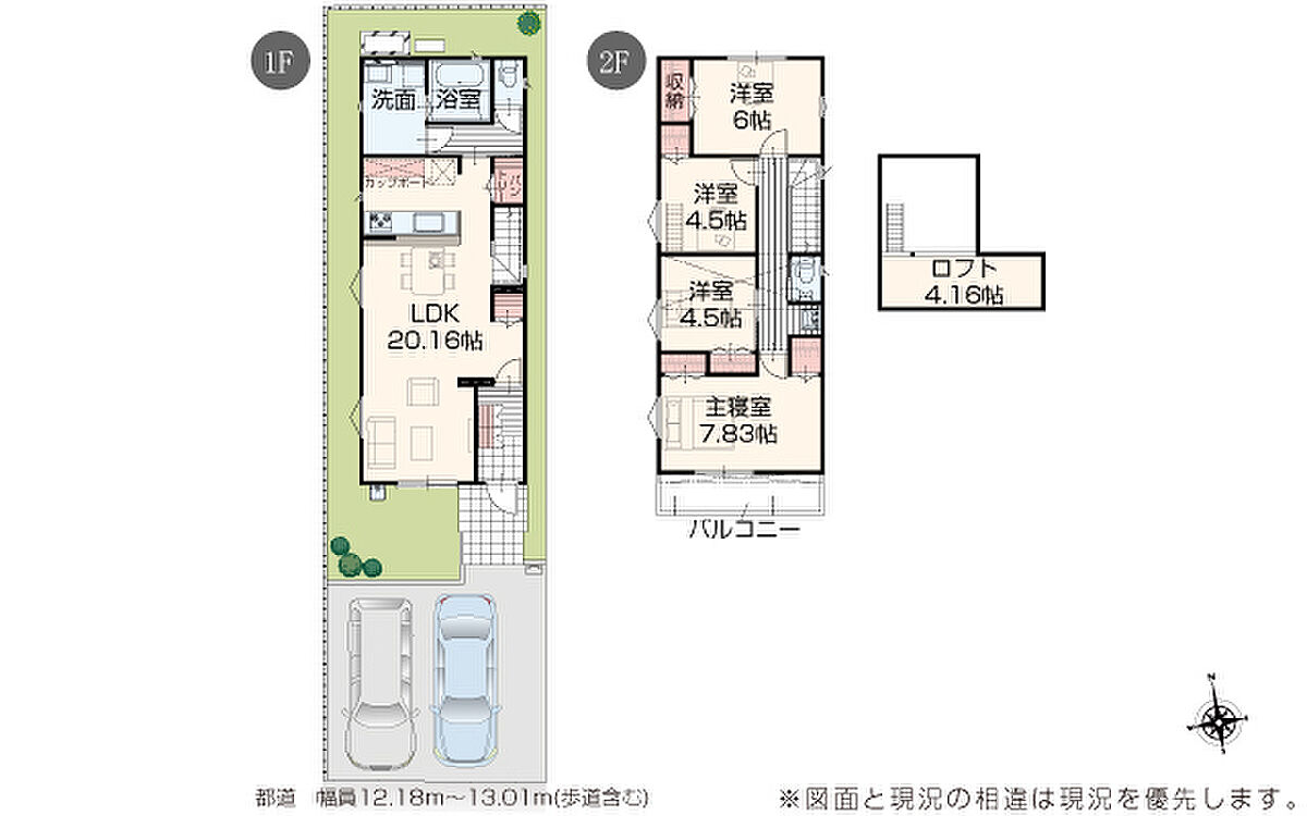 | 駐車場 | 2台 | 道路の幅員 | 道路幅 3.00 m ~ 13.01 m アスファルト舗装 |