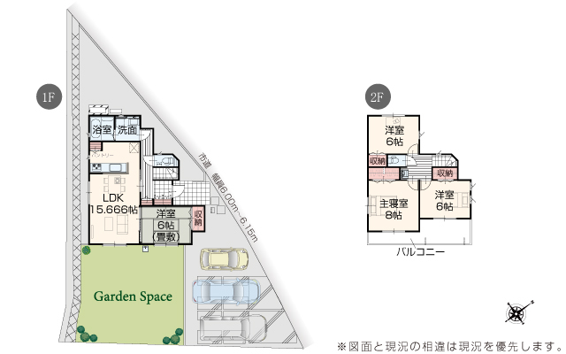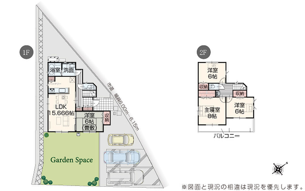 | 駐車場 | 3台 | 道路の幅員 | 道路幅 6.00 m ~ 6.15 m アスファルト舗装 |