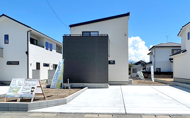 | 備考 | 公営水道、本下水、中部電力、オール電化 【地目(現況)】田(宅地)【駐車場】3台(3号棟)、4台(1号棟)※掲載画像は色、仕様、デザイン等変更される場合があります。※図面と現場との相違は現場を優先します。※完成時期・入居時期は天候等によって遅れる場合があります。また、完成時期は完了検査日(予定含む)としています。※周辺環境はページ公開日時点の情報となります。※建設エリア、時期によっては使用メーカー及び設備・仕様について一部変更される場合があります。詳しくはお問い合わせにてご確認下さい。※2号棟は設備の仕様が異なりますので、詳しくは店舗スタッフまでお問い合わせください。内覧予約受付中物件管理番号:23-P1 | ||