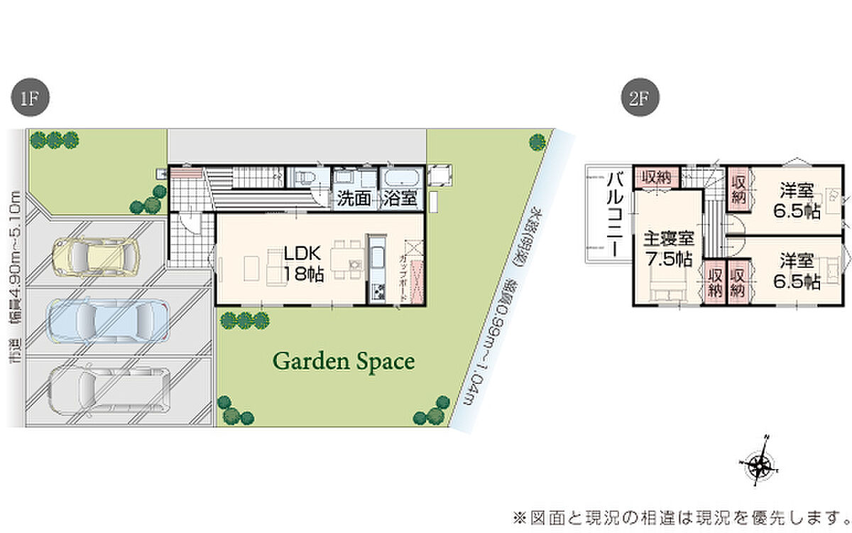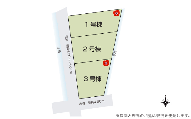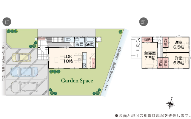 | 駐車場 | 3台 | 道路の幅員 | 道路幅 4.90 m ~ 5.10 m アスファルト舗装 |