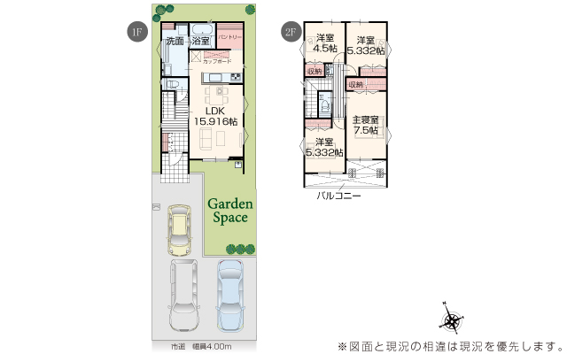 | 駐車場 | 3台 | 道路の幅員 | 道路幅 4.00 m アスファルト舗装 |
