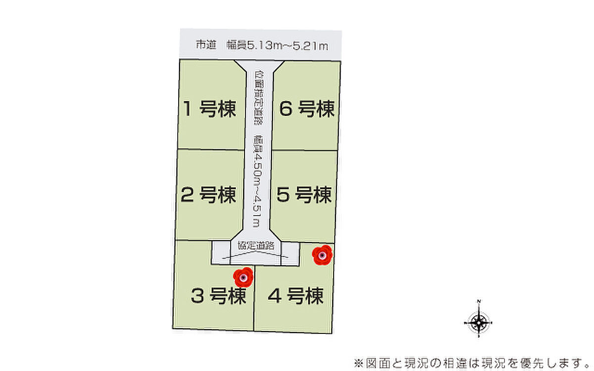 | 駐車場 | 3台 | 道路の幅員 | 道路幅 4.50 m ~ 5.21 m アスファルト舗装 |
