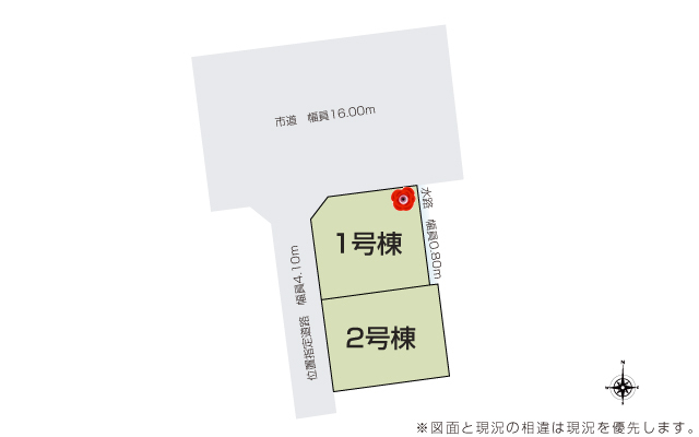 | 駐車場 | 2台 | 道路の幅員 | 道路幅 4.10 m ~ 16.03 m アスファルト舗装 |