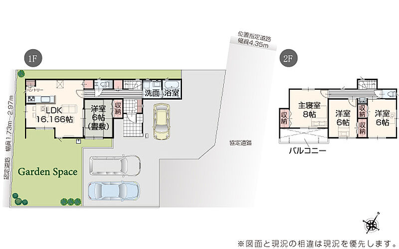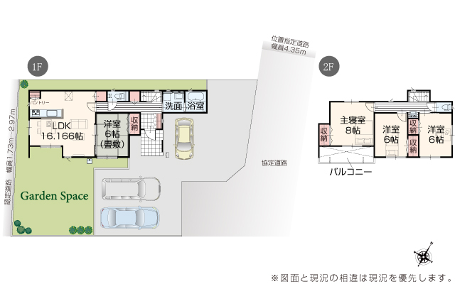 | 駐車場 | 3台 | 道路の幅員 | 道路幅 1.73 m ~ 4.35 m コンクリート舗装 |