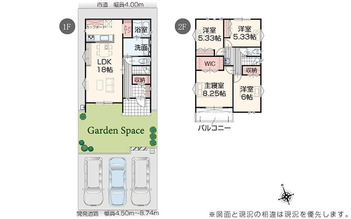 | 駐車場 | 3台 | 道路の幅員 | 道路幅 3.00 m ~ 8.74 m アスファルト舗装 |