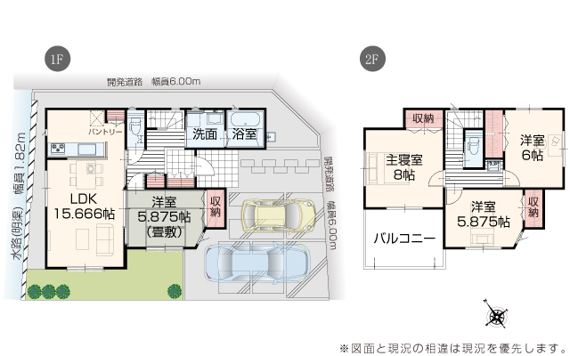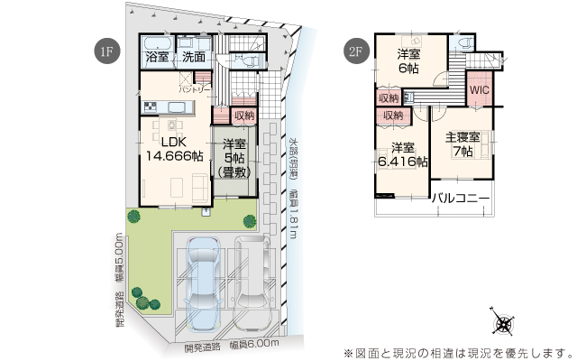 | 駐車場 | 2台 | 道路の幅員 | 道路幅 5.00 m ~ 6.50 m アスファルト舗装 |
