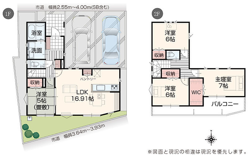 | 駐車場 | 2台 | 道路の幅員 | 道路幅 1.99 m ~ 4.00 m アスファルト舗装 |