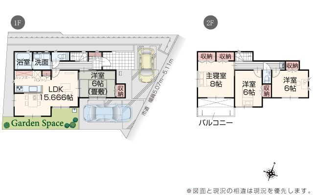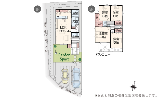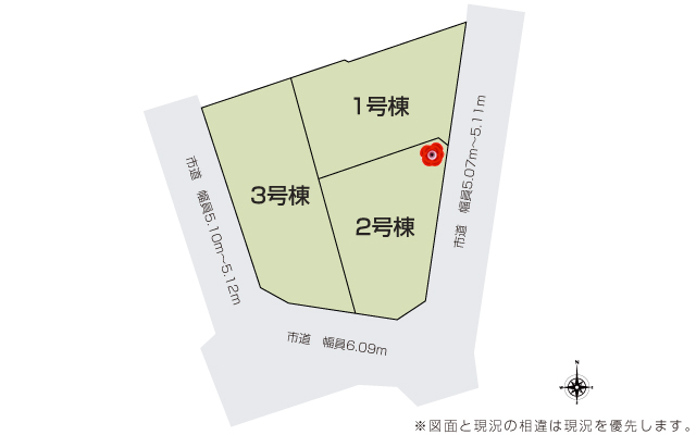 | 駐車場 | 2台 | 道路の幅員 | 道路幅 5.07 m ~ 6.09 m |