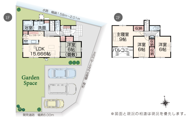 | 駐車場 | 3台 | 道路の幅員 | 道路幅 6.00 m ~ 6.16 m アスファルト舗装 |