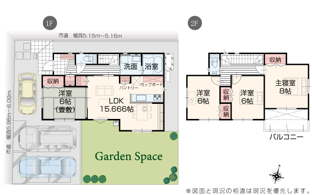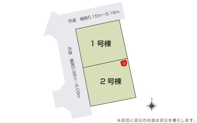 | 駐車場 | 2台 | 道路の幅員 | 道路幅 5.15 m ~ 6.09 m アスファルト舗装 |
