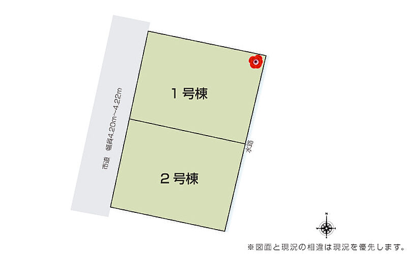 | 駐車場 | 2台 | 道路の幅員 | 道路幅 4.20 m ~ 4.22 m アスファルト舗装 |