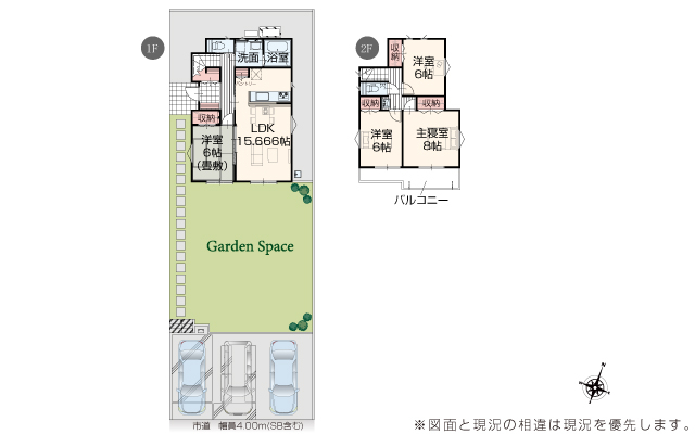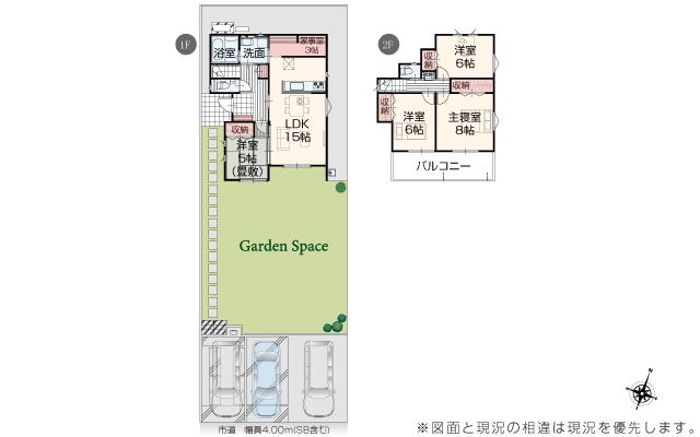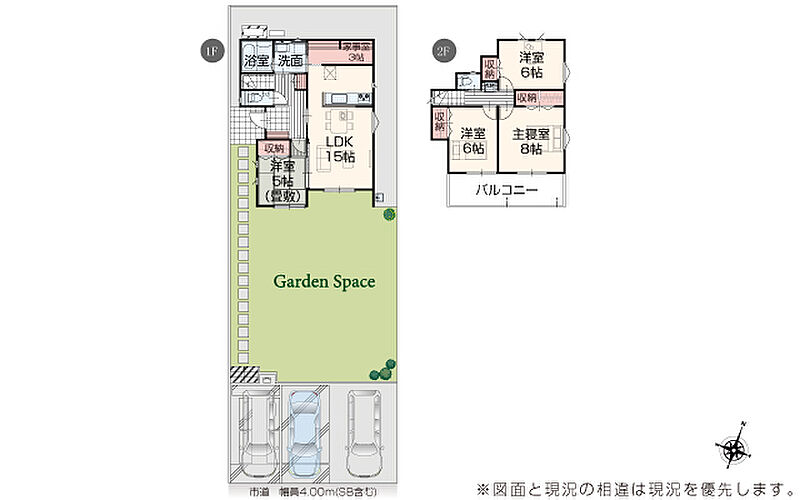 | 駐車場 | 3台 | 道路の幅員 | 道路幅 4.00 m アスファルト舗装 |