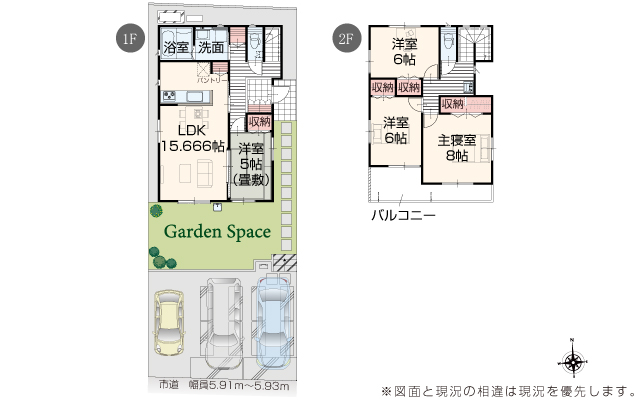 | 駐車場 | 3台 | 道路の幅員 | 道路幅 5.91 m ~ 5.93 m |