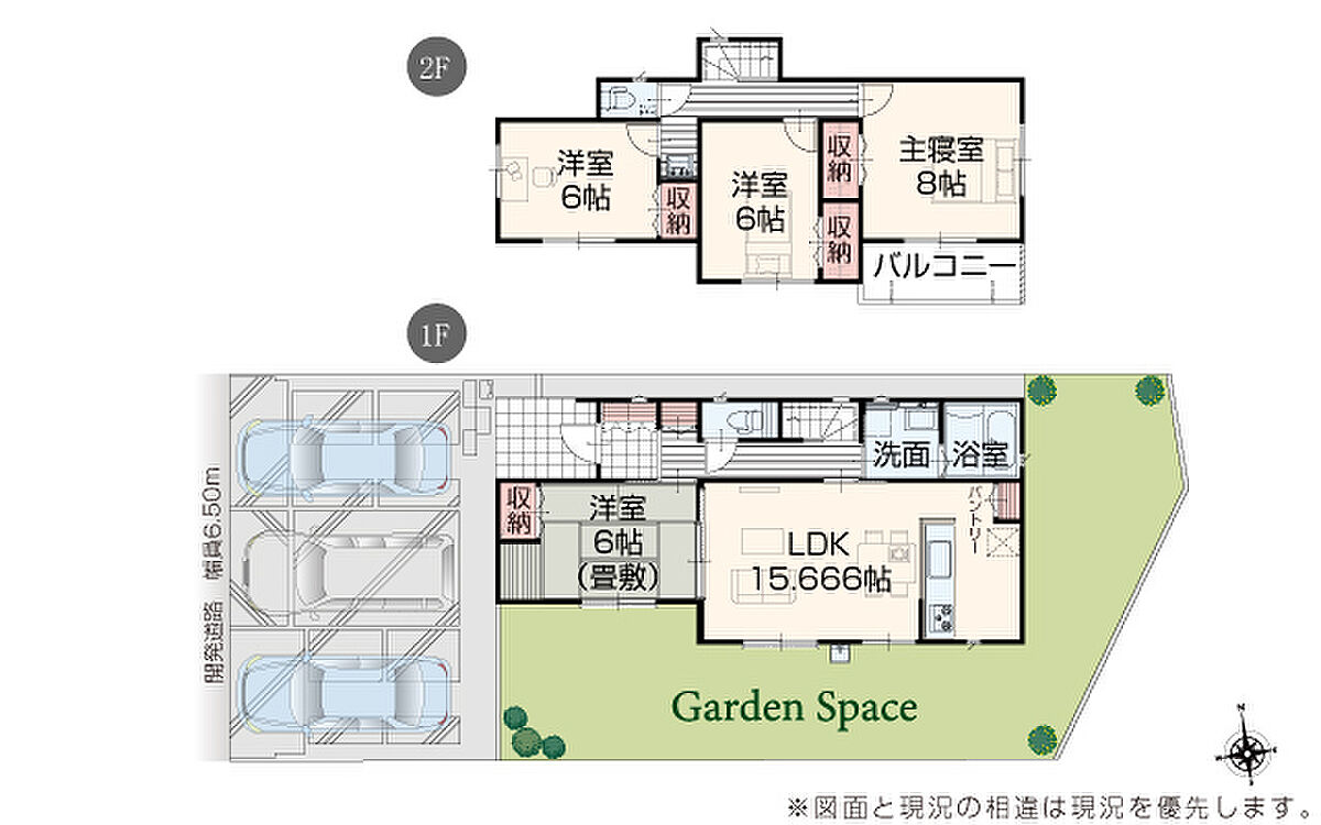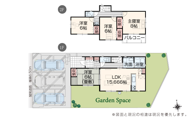 | 駐車場 | 4台 | 道路の幅員 | 道路幅 6.50 m ~ 8.14 m アスファルト舗装 |