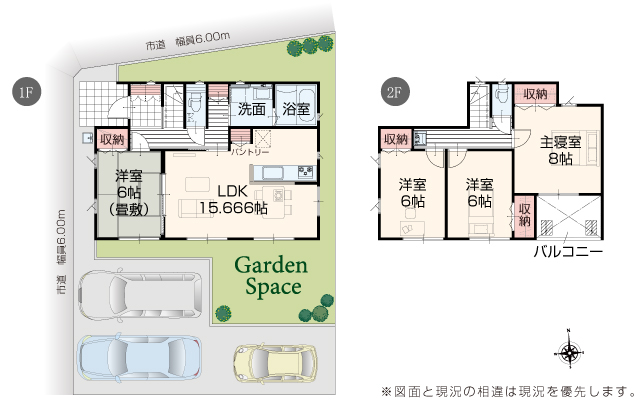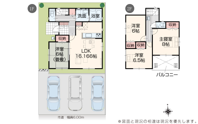 | 駐車場 | 3台 | 道路の幅員 | 道路幅 6.00 m アスファルト舗装 |